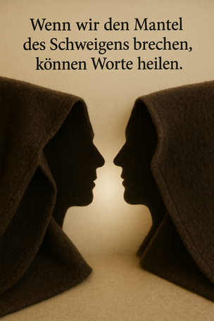 Es gibt Menschen, die schweigen - aber nicht etwa, weil sie nichts zu sagen hätten, sondern weil das Schweigen in ihrem Leben einmal ihre einzige Überlebensstrategie war. In Familien, in denen Wut gefährlich war, Tränen nicht erwünscht oder Wahrheit bestraft wurde, da war Schweigen Schutz. Das Schweigen war wie ein schützender Mantel, der ein Rückzugsort wurde. Das Schweigen hielt dich unsichtbar, bewahrte dich vor Demütigung oder Schmerz. In der Traumatherapie nennen wir das eine adaptive Überlebensstrategie: Etwas, das damals notwendig war, aber heute zu eng geworden ist. - Wie ein Mantel, der irgendwann nicht mehr passt.